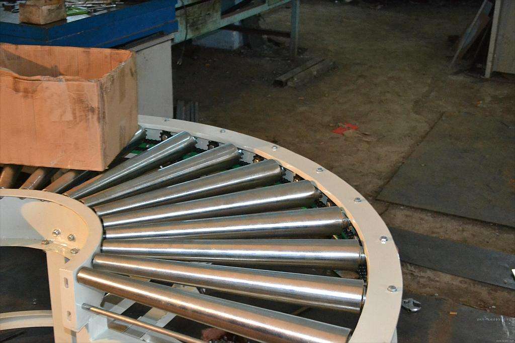 噴涂生產(chǎn)線單層包塑棍子積方式托盤輸送線體,由兩個(gè)減速電機(jī)驅(qū)動(dòng),摩擦式傳動(dòng),共分5個(gè)工作區(qū)域,長(zhǎng)約二十六米;考慮到輸送品種繁多、剝漆、打磨二個(gè)工序,不同的產(chǎn)品工序時(shí)間變化較大,為避免工作過程中形成瓶頸工序,特在此2個(gè)工序間專設(shè)物料待放區(qū)域,以確保線體輸送流暢。同時(shí)考慮到托盤對(duì)產(chǎn)品的兼顧,托盤采用500*1000的規(guī)格,縱向輸送,便于操作。